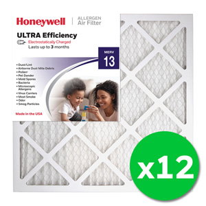 Capturing a high percentage of airborne particles and allergens, this selection of Honeywell High Efficiency Allergen Air Filters features a MERV 11 Rating. High efficiency 1 in. air cleaning filters are electrostatically charged to capture and trap dust particles while remaining effective against a series of other contaminants. Showcasing durability and overall effectiveness, these air filters offer easy flow energy efficiency and a heavy duty frame. Honeywell High Efficiency Allergen Air Filters each last up to 3 months. This pack of 4 air filters provides one year worth of air filtration. Please be certain to measure the filters you are replacing or your filter boot to make sure it's an exact match.