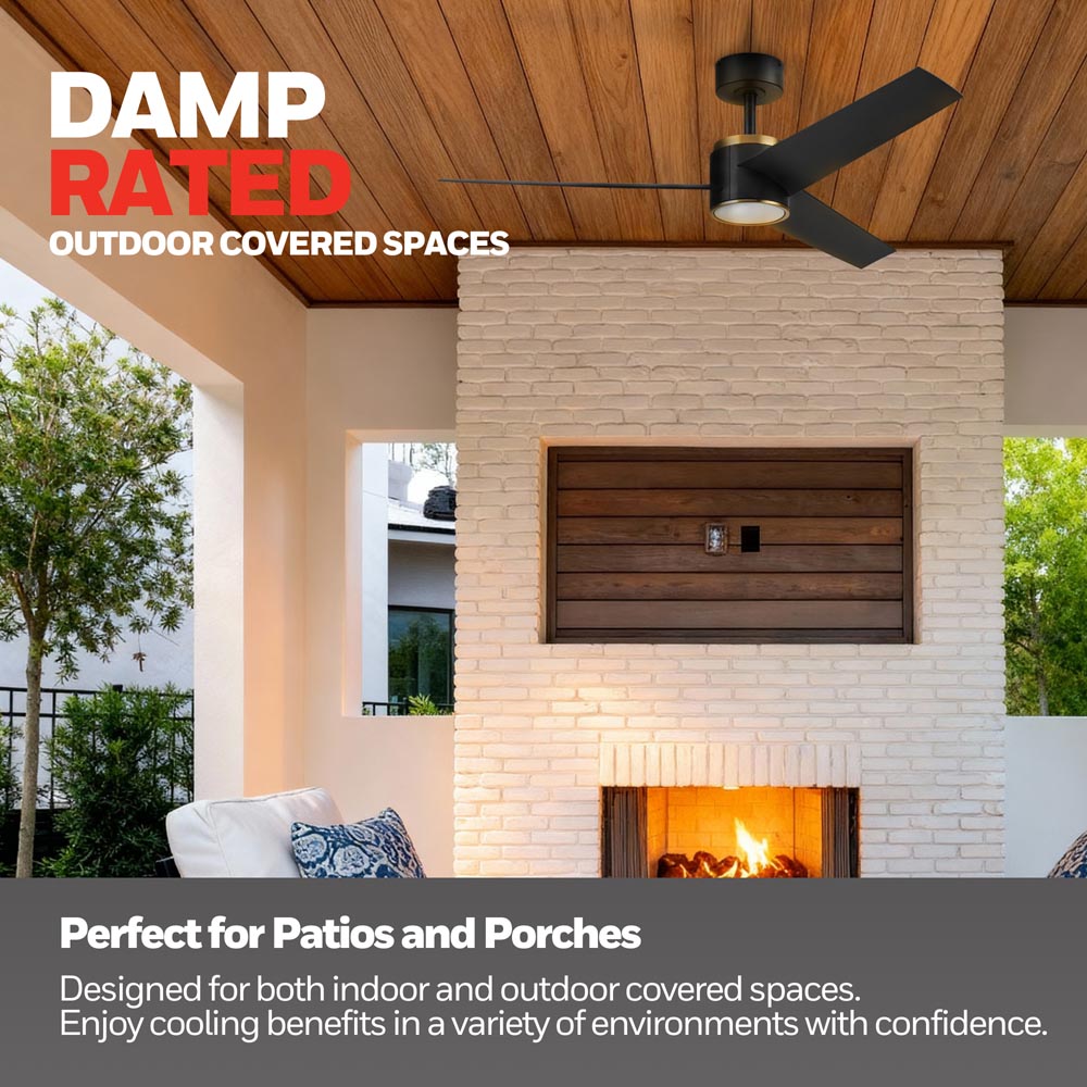 Honeywell Altan Indoor or Covered Outdoor Ceiling Fan with Adjustable LED Light, 52-Inch, Matte Black and Brushed Gold - 53056-03