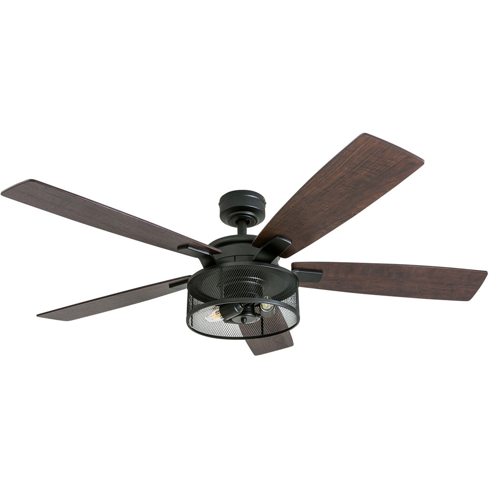 The Honeywell Carnegie Industrial Ceiling Fan offers a rugged, modern appeal in every inch. The steel mesh drum light holds three Edison bulbs that provide a very beautiful industrial embodiment. From the shape of the blade iron flowing down to the fan blades, the Honeywell Carnegie Ceiling Fan creates a very sleek, geometric appeal.