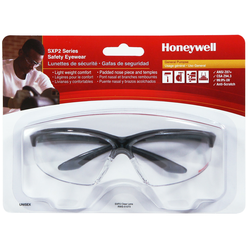 Honeywell SXP2 Safety Eyewear, Black Frame, Clear Lens, Scratch-Resistant Hardcoat Lens Coating - RWS-51073