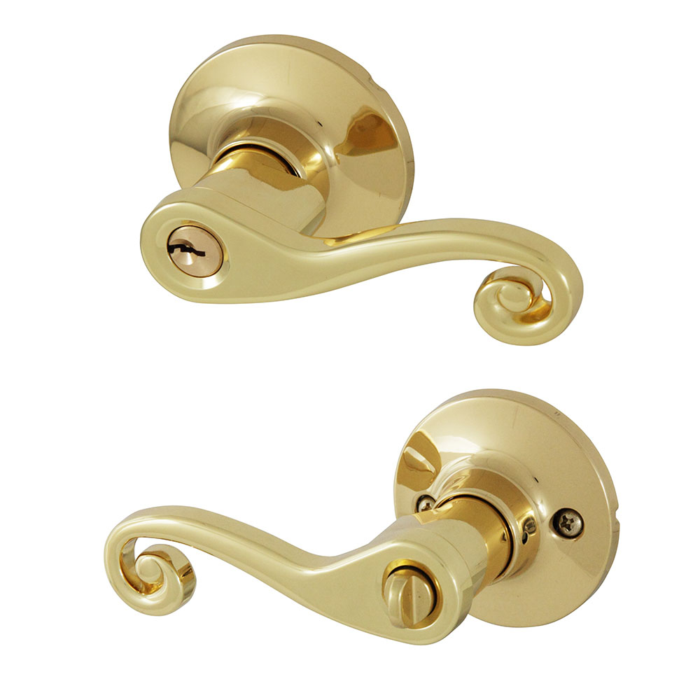 Honeywell Scroll Entry Door Lever, Polished Brass, 8108001
