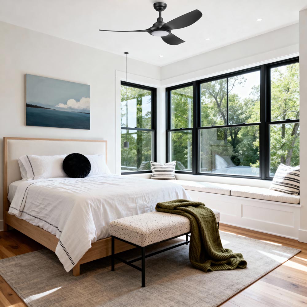 The Honeywell Sirro 52-inch ceiling fan delivers modern performance and everyday versatility for bedrooms, living rooms, and covered outdoor spaces. Designed with clean lines and a streamlined three-blade profile, Sirro blends contemporary style with advanced airflow technology.