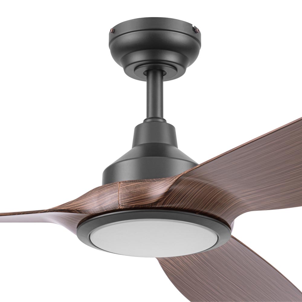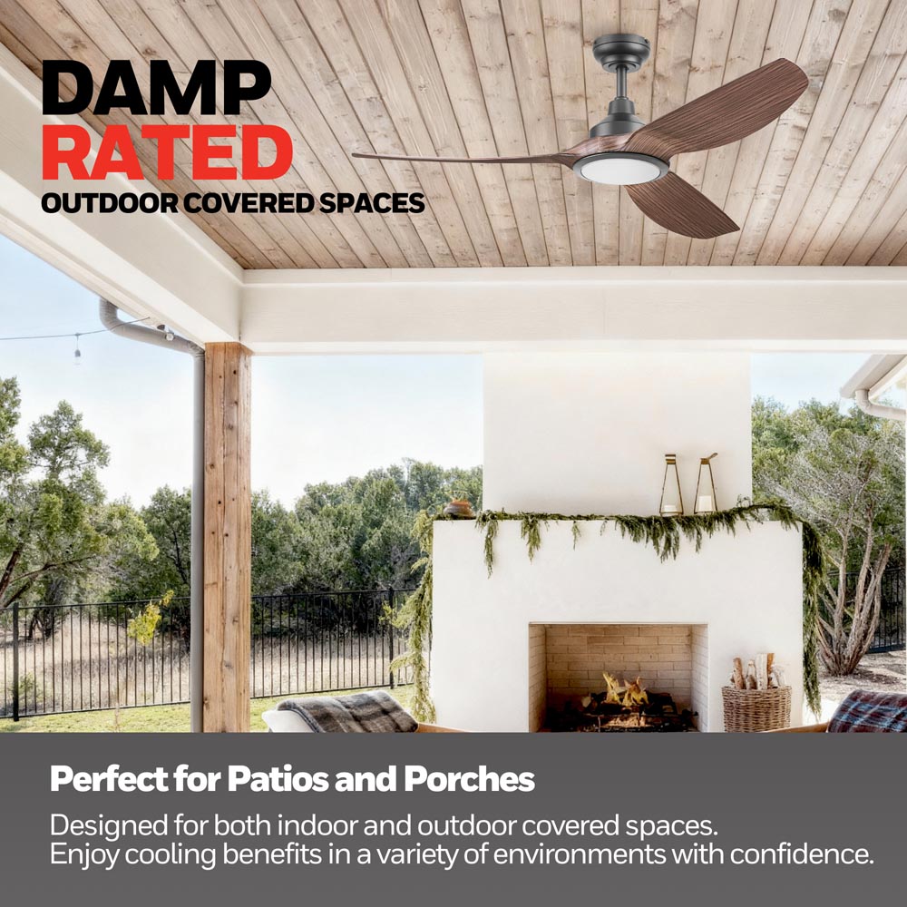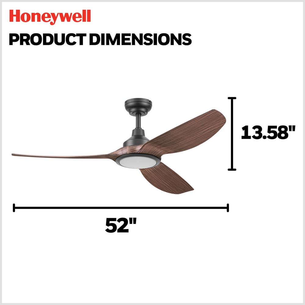 Honeywell Sirro Indoor or Covered Outdoor Ceiling Fan with Chocolate Auburn Blades and Adjustable LED Light, 52-Inch, Matte Black - 53027-03