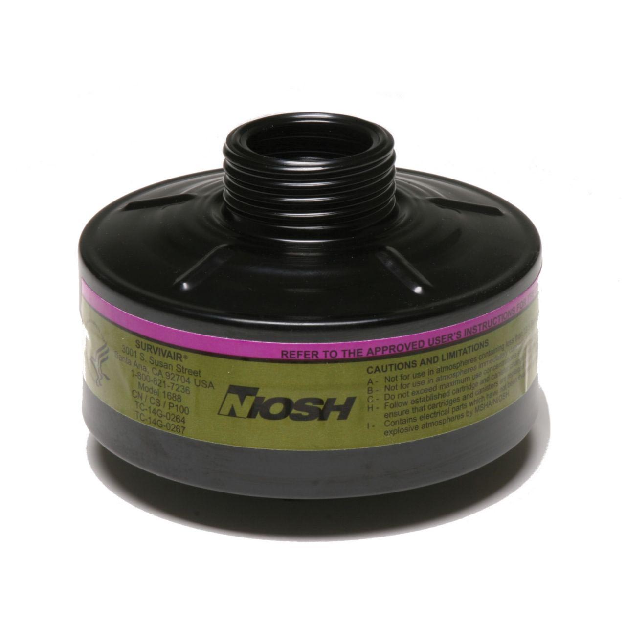 Honeywell Survivair canisters are NIOSH approved. They are designed specifically for Honeywell Survivair Opti-Fit Gas Masks. This selection in particular provides protection against chloroacetophenone (CN) and chlorobenzylidene malononitrile (CS). The included P100 filter excels in protecting against particulates such as pepper spray.
