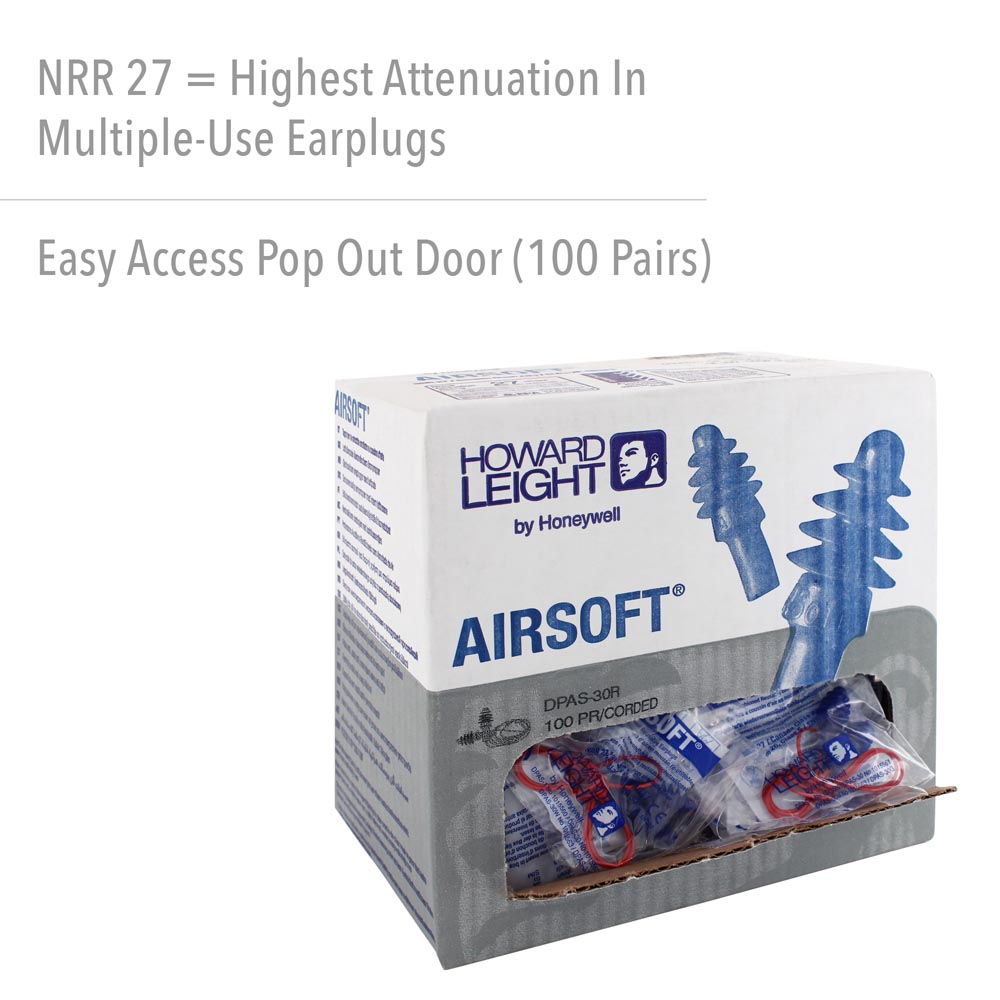 Howard Leight Airsoft Flanged Corded Reusable Earplugs, 100-Pairs