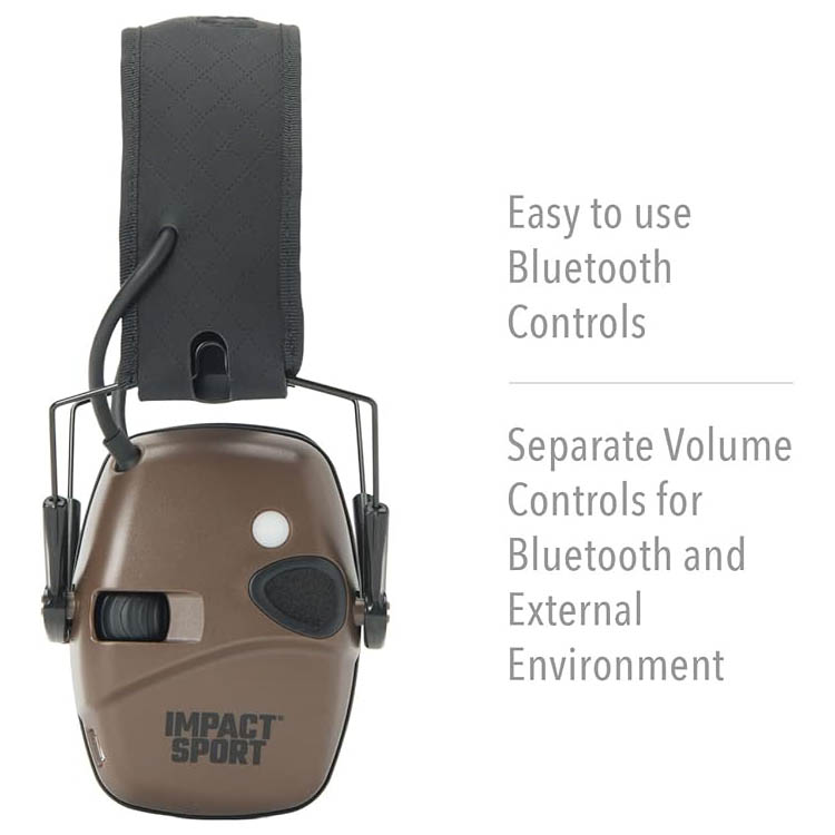This Howard Leight Impact Sport Bluetooth Electronic Shooting Earmuff offers superior hearing protection for shooting while keeping you safely connected to environmental sounds. Digital sound compression provides a lightning-fast .5 millisecond reaction time (the interval between when a shot is fired and when the earmuff lowers the sound to a safe level). The 21 dB NRR (Noise Reduction Rating) makes the earmuff ideal for hunting and shooting at the range. Two high-gain omni-directional microphones deliver 5X sound amplification of low level frequencies. This allows you to hear important commands on the range, and crucial environment sounds when hunting. Integrated Bluetooth technology allows the electronic earmuff to sync with your mobile device for seamless music streaming. You can also make safe, hands-free phone calls, and stay connected with others at the range or on the hunt. The 2 Mbps data speed is twice as fast as Bluetooth 4.2 for higher fidelity audio from your music player. Low profile ear cups ensure proper firearm stock clearance while aiming, and the padded headband is adjustable for a comfortable, customized fit. The rechargeable lithium ion battery delivers long-lasting performance. All Howard Leight electronic shooting earmuffs and safety eyewear are compatible for use with each other.