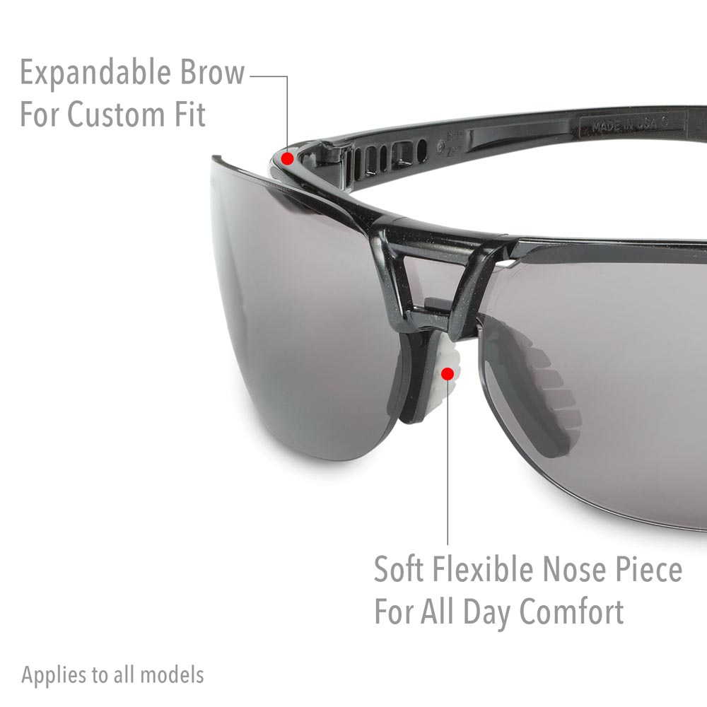 - CUSTOM FIT & COMFORT: Wraparound brow expands for custom fit; nose piece with soft, flexible fingers reduces slippage and fits a variety of facial profiles; soft temple tip pads for all day comfort