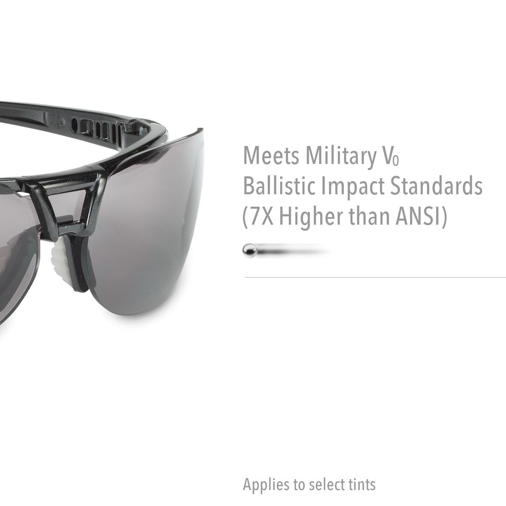 - SAFETY: Protege protective eyewear meet ANSI Z87.1-2015 and CSA Z94.3 safety standards; select tints meet military V0 ballistic impact standards (MIL-PRF-31013, Clause 3.5.1.1); 7X ANSI requirements